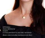(Basic necklace includes engraved disc with no birthstone/cross)