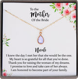 Celebrate the meaningful bond between you and the mother of your bride with this personalized stylish top quality handmade jewelry gift.