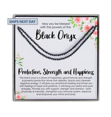 Celebrate the eternal bond between you and a special woman and empower her with this stylish top quality handmade jewelry gift. Black Onyx has a slow, grounding and stable frequency to it. It is a crystal that took its time in being formed. The gift of black onyx is the energy of strong support, stamina and determination to help one persevere. It will teach the wearer to rely on his or her own powers and trust their inner voice