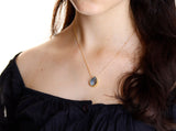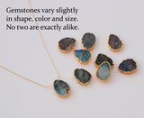 > Gold electroplated Labradorite slice pendant hangs beautifully from chain - making this necklace a perfect choice for daily wear.