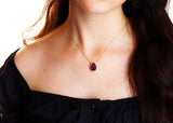 > Gold electroplated Amethyst slice pendant hangs beautifully from chain - making this necklace a perfect choice for daily wear.