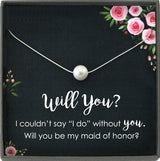 Will you be my Maid of Honor Gift Necklace, Floating Pearl Necklace Bridesmaid, Single Pearl Necklace