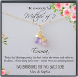 Second Time Mom Gift Birthstone Necklace for Mom Gift for Birth of 2nd Child