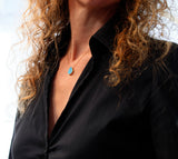 > Gold electroplated turquoise slice pendant hangs beautifully from chain - making this necklace a perfect choice for daily wear.